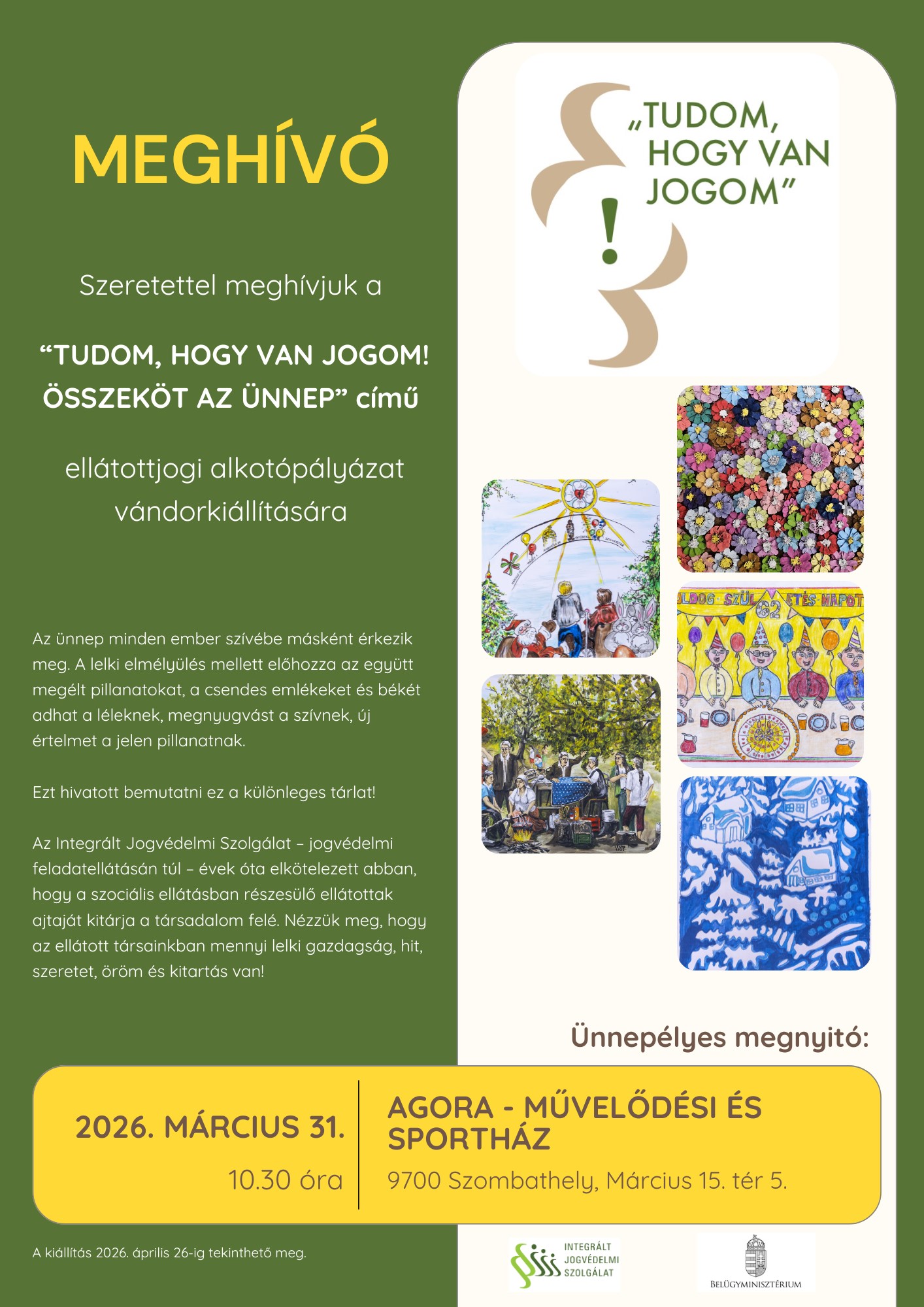 A Belügyminisztérium Integrált Jogvédelmi Szolgálata 2026 évben „Tudom, hogy van jogom! Összeköt az Ünnep” címmel ellátottjogi vándorkiállítást szervez az ország különböző pontjain.